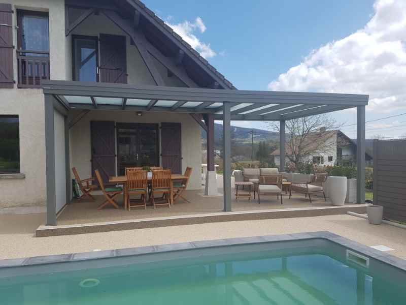 Carport Veranco modèle Jade installer dans l4ain par l’entreprise Heinrich de Saint Rémy