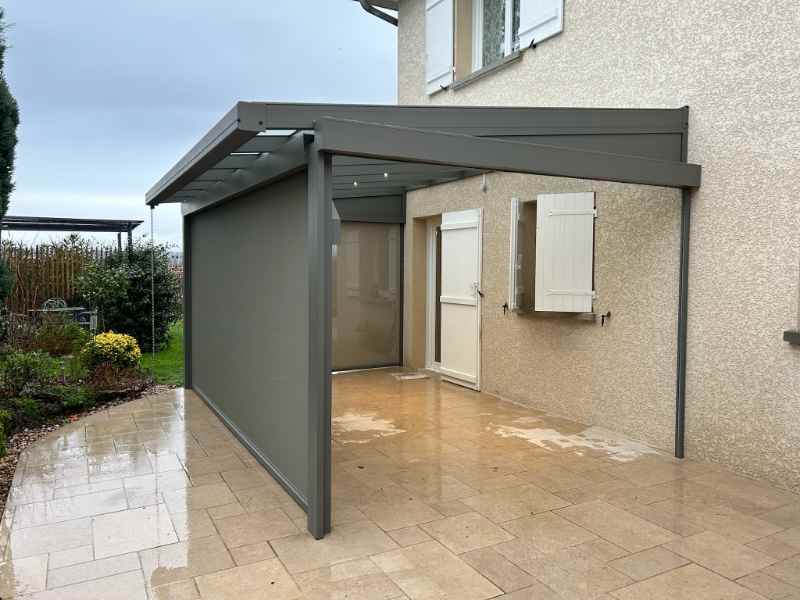 Réalisation d’un carport en aluminium pour camping-car contre une maison à Bourg-en-Bresse dans L’Ain par l’entreprise Heinrich