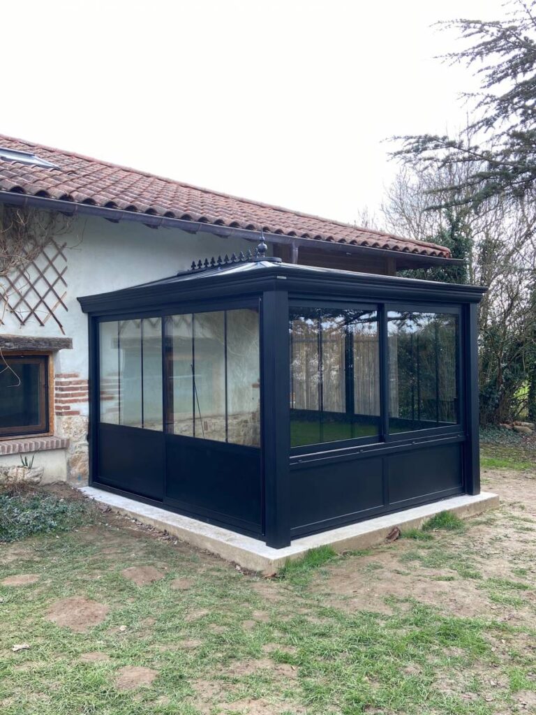 Notre équipe a réalisé l’installation d’une véranda 3×3 de la marque VERANCO en aluminium de couleur noire.