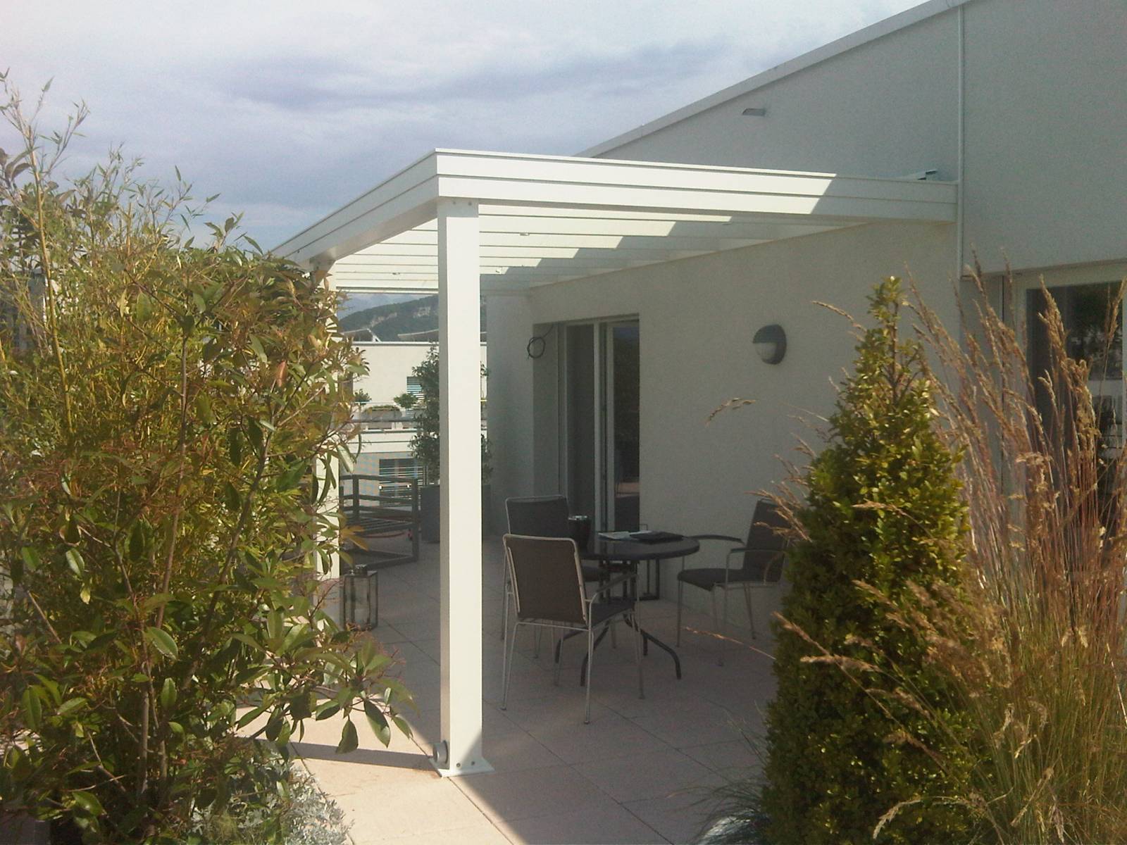 Sur la terrasse, adossée à la maison, elle offre un espace de vie convivial pour profiter pleinement de l’environnement. Sa structure aluminium renforcée résistera aux intempéries (vent, grêle, charge de neige) et abritera votre mobilier de jardin toute l’année.