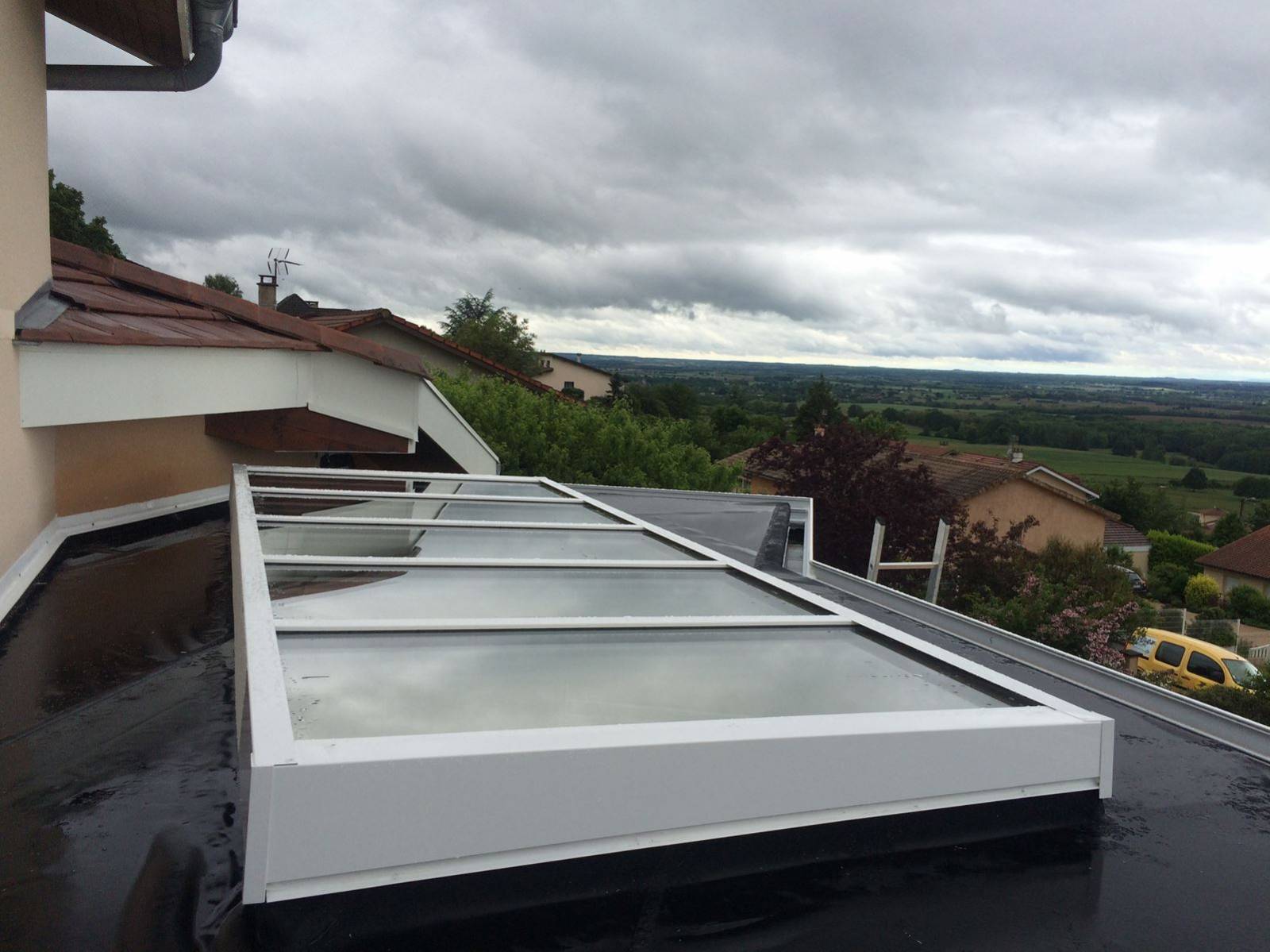 Le vérandôme Fidji : est une toiture plate multicouches avec dôme central vitré plat.