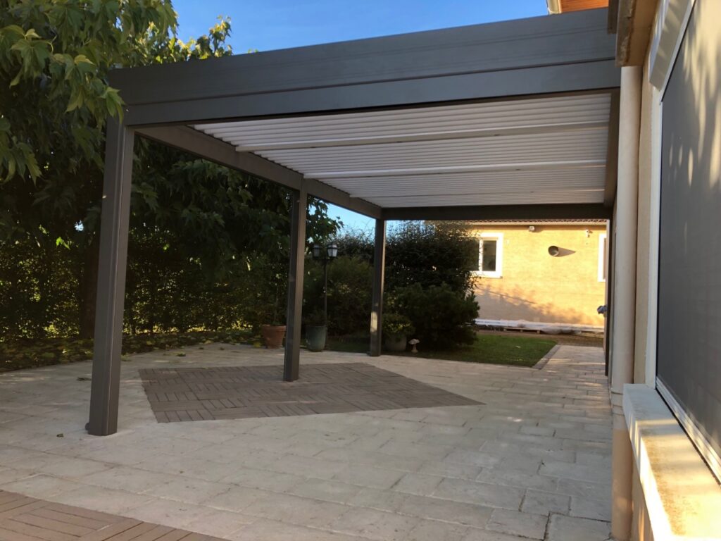 Cette pergola est installée aux portes de Lyon dans la commune de Villars-les-Dombes dans l’Ain. Grâce aux grandes dimensions possibles du fabricant Veranco, les clients sont ravis et vont pouvoir en profiter pleinement tout au long de l’année.