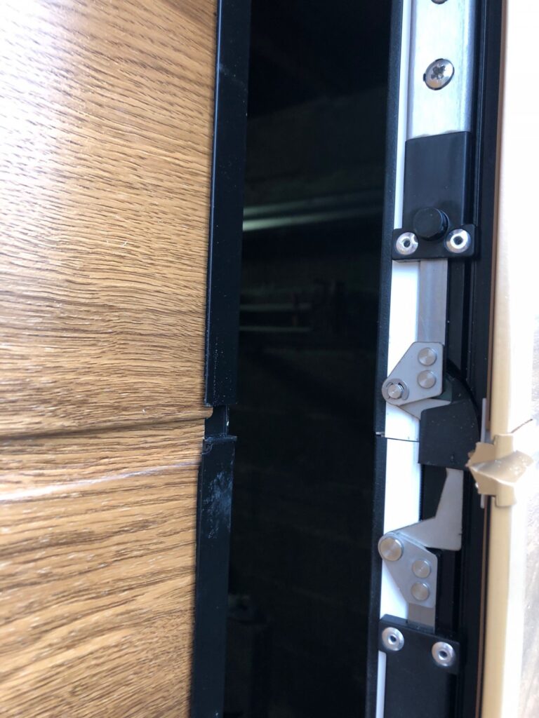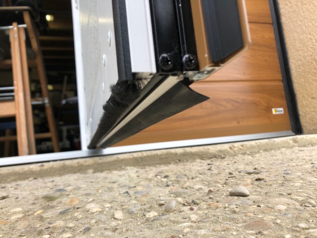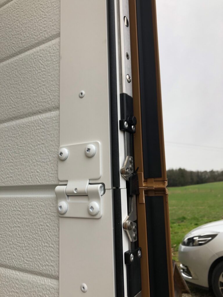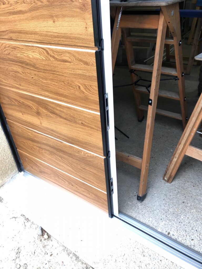Une petite hauteur sous plafond est suffisante pour l’emprise de la motorisation et du rail arrière de la porte. Panneau isolant avec une double peau aluminium et une mousse à haute densité de 40 mm d’épaisseur au total.