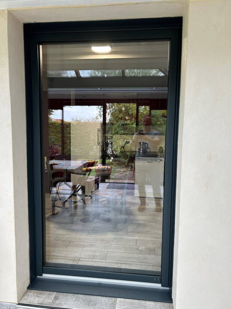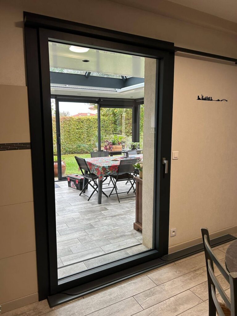 Des anciens clients à Viriat dans l’Ain chez qui nous avions installé une véranda il y a 5 ans souhaitaient remplacer la porte-fenêtre située entre la véranda et la cuisine.