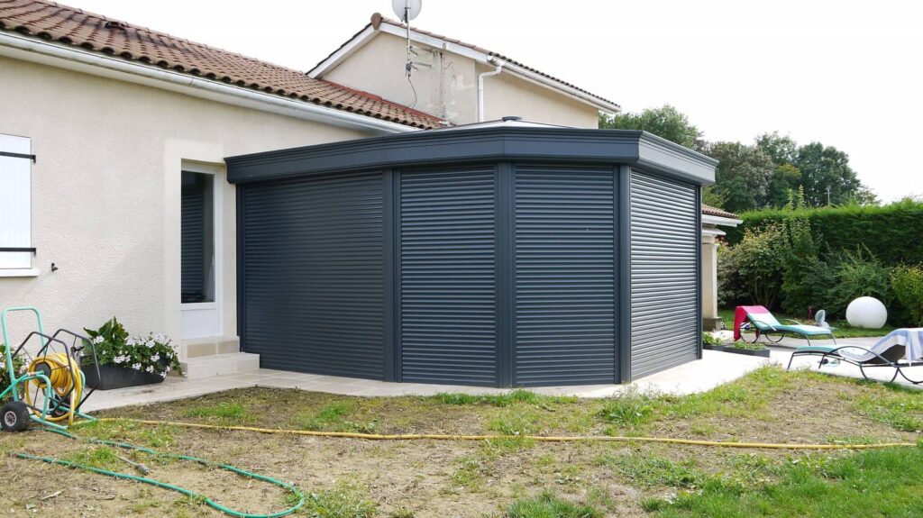 Des volets roulants ont été installés nouvelle génération autoportants sans déport pour la véranda Veranco. Coulisses au design épuré pour une parfaite intégration aux poteaux de la véranda Veranco.
